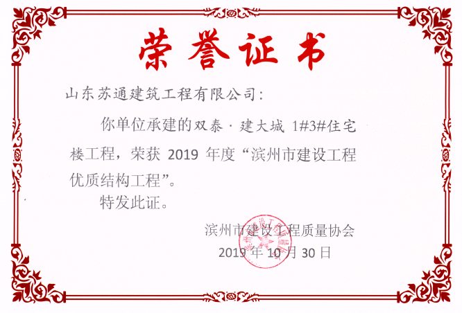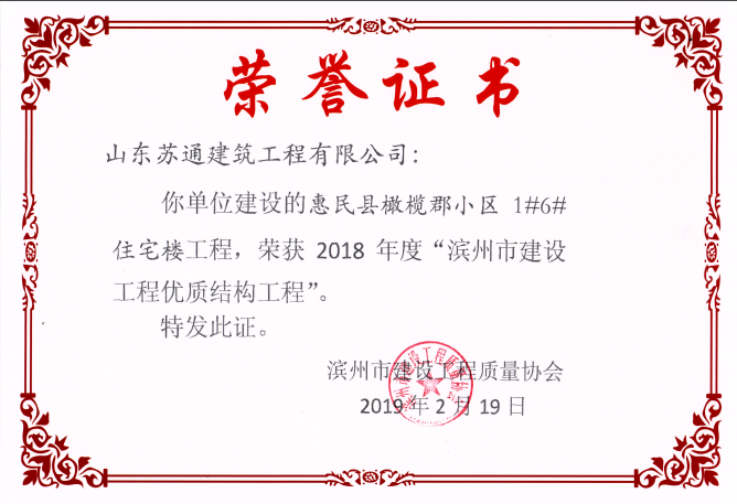 山東蘇通建筑工程有限公司,創(chuàng)建于2009年8月。目前擁有房屋建筑工程施工總承包壹級、市政公用工程施工總承包叁級、水利水電工程施工總承包叁級資質,同時還具有建筑裝修裝飾工程專業(yè)承包貳級、消防設施工程專業(yè)承包貳級、鋼結構工程專業(yè)承包叁級、建筑機電安裝工程專業(yè)承包叁級等專業(yè)承包資質。 公司總部坐落于山東省濱州市濱城區(qū)黃河十二路877號,現(xiàn)有辦公面積約2000平方米,機構設黨支部工會辦公室、總經理辦公室、綜合辦公室、工程管理部、經營預算部、資產財務部、材料設備部、運行管理部、法律事務部等多個職能部門。公司管理體系已經通過了GB/T 19001及GB/T 50430質量管理體系、GB/T 24001環(huán)境管理體系(EMS)、GB/T 28001職業(yè)健康安全管理體系(OHSMS)等體系的認證。 公司承建完工了濱州市建大教師之家、建大清怡苑、香格里拉水岸綠城住宅小區(qū)、雙泰建大城、曲阜崇德公館住宅小區(qū)、北海新區(qū)御景藍灣住宅小區(qū)、沾化德榮國際華城住宅小區(qū)、惠民橄欖郡住宅小區(qū)等工程項目,目前在建工程項目有:濱州市頤高國際電子商務產業(yè)園住宅小區(qū)項目、濱州市東盛國際項目、高新區(qū)建大中央華府住宅小區(qū)項目、濱州市融匯新里程住宅小區(qū)項目、濱州市建大秦皇壹號住宅小區(qū)項目、濱州市森林花...